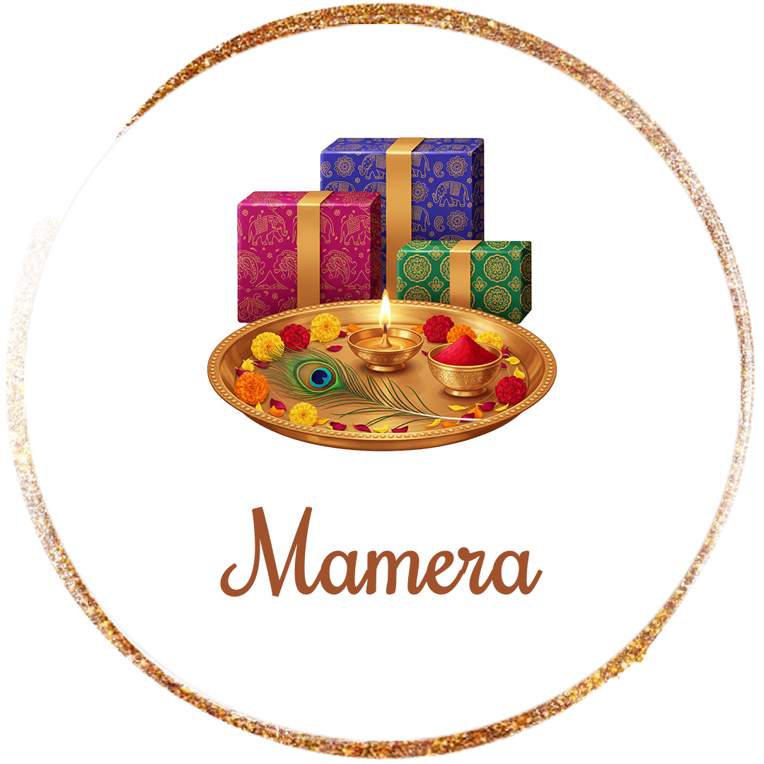 A traditional Gujarati pre-wedding ritual where the Groom’s (or Bride) maternal family brings gifts, sweets and fruits in decorated trays, featuring dhol, music and garba…This is a heartfelt, emotional gesture showing maternal side’s love, support and best wishes for the new journey!