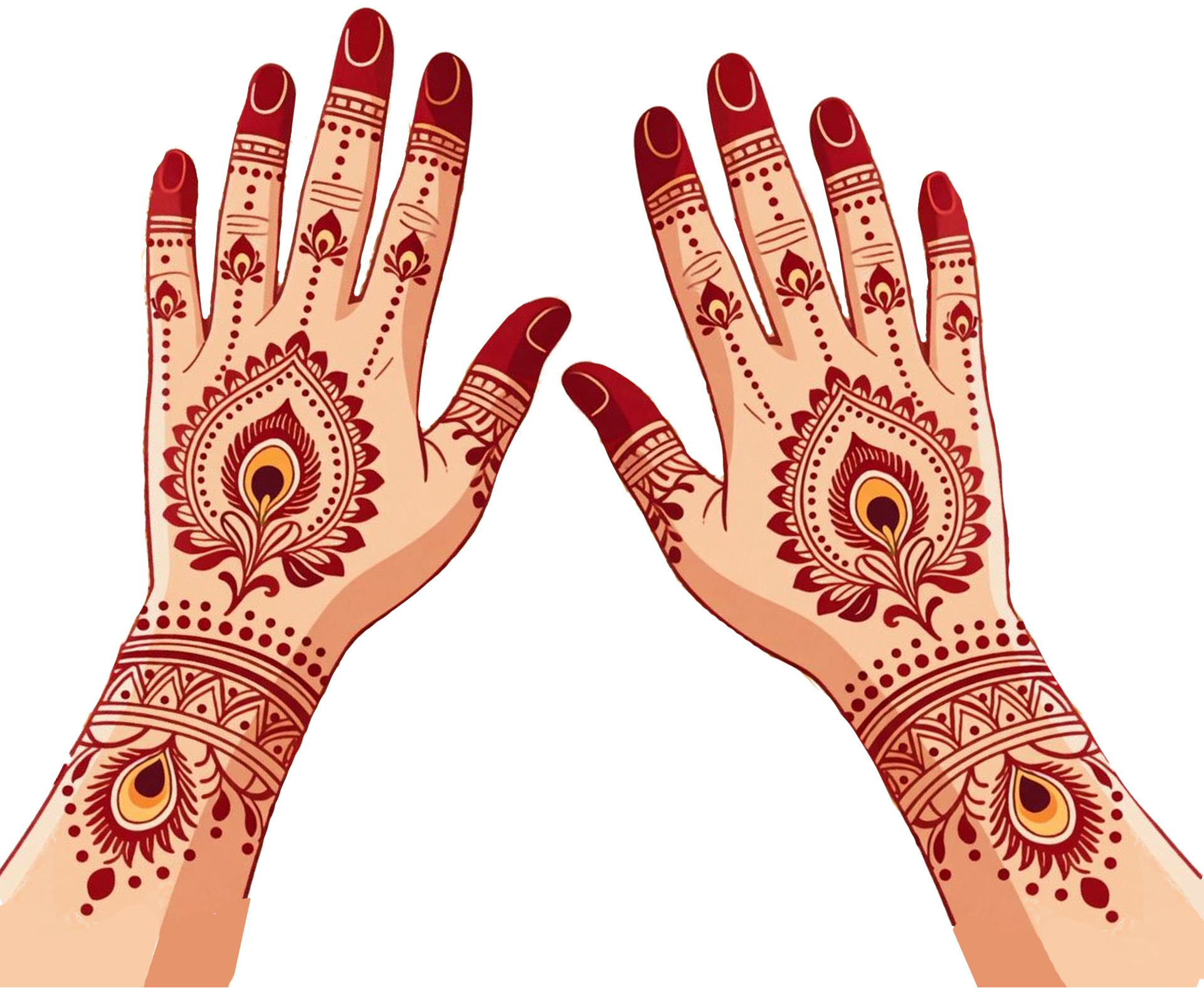 A festive pre-wedding event, typically for family and friends, filled with music, dancing, and food. Mehendi is believed to bring good luck, wealth and positive spirits to the new marriage!!! Fun fact: it is said that a darker henna stain is traditionally seen as a sign of a deeper love and a stronger relationship with the husband.